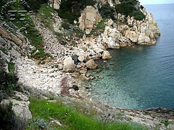 Caletta di piccole dimensioni con fondo in pietra irregolare di varie dimensioni, aperta verso Nord. Vista dal'lalto della strada provinciale assume delle forme molto pittoresche.